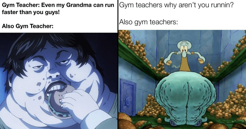 Fat pe teacher meme. Caption a meme or image make a gif make a chart make a demotivational flip through images. What i look like if you re talking while i m talking grumpy cat hates teacher memes. An image tagged fat kid memes teacher math. 12 want to see what grumpy looks like. Gym teacher is a series of image macros mocking the weight and overall physical fitness of public school gym teachers. 13 teachers can read anything. That d be great teacher memes have a point.