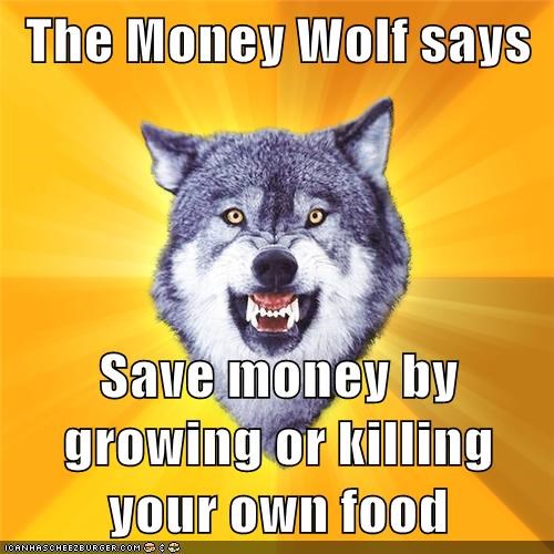 The Money Wolf Says Save Money By Growing Or Killing Your Own Food