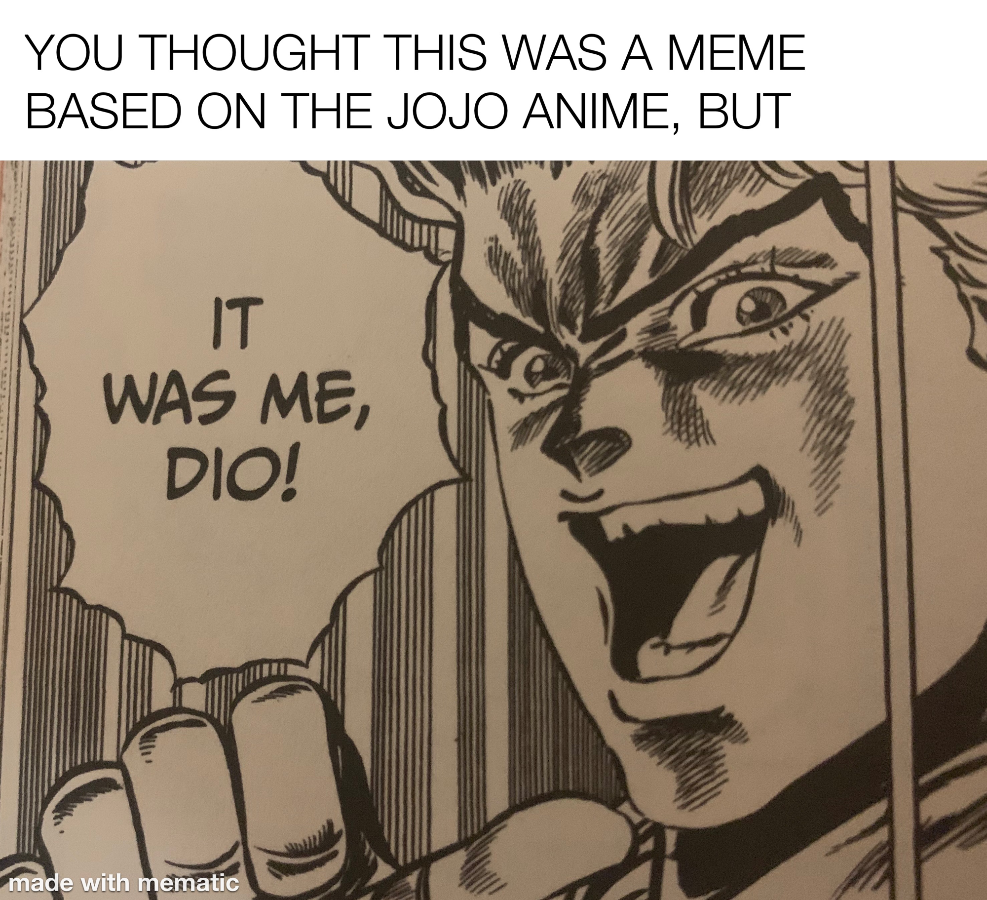 Jojo meme you thought. Hero meme otaku stupid kids jojo memes history memes comic games jojo bizzare adventure anime jojo bizarre. But it was me dio. Popular memes on the site ifunny co. Apr 19 2019 roses are red you thought this was a poem but popular memes on the site ifunny co. Search by entering a characters name. Jojo s bizarre adventures much more than naruto much more than one piece much more than death note and especially bleach is a series that owns up to its own name bizarre is the appropriate word to describe everything that this beloved series has come to embody whether that means its distinct color palette beyond human mannerisms or the menagerie of stands that seem less curated and. All i did was spend several hours finding and compiling these jojo memes in an order i think will make you laugh.