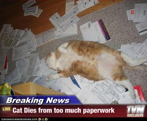 Breaking News Cat Dies From Too Much Paperwork Lolcats Lol