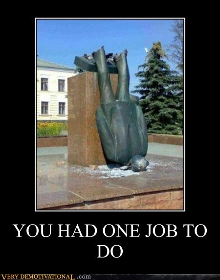 Browsing all 194 images add an image. Pin tweet you had one job is an expression used to call attention to perceived blunders made by individuals on the job. If there s one thing the good people of the internet love aside from cat videos of course it s pointing out when someone makes a truly boneheaded mistake. Author cleanmemes posted on june 20 2014 format image categories clean funny images clean memes you had one job memes tags clean funny images clean memes you had one job memes leave a comment on non sticky fry pan. See more ideas about you had one job one job funny pictures. A way to express total fail epic fail especially when the one job was very simple. To add that extra punch to the meme world.