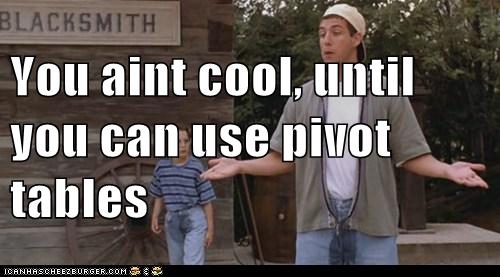 Pivot tables meme. The pivot table will display the total of all the values in the amount column. See more ideas about excel humor pivot table. Drag the accttype field into the rows area. You can try to explain how pivot tables are cool how they make it easy to analyze data how they re really good at summarizing in different ways how they re interactive blah blah blah. This question comes up a lot when people are just getting started with pivot tables. Pivot tables are interactive tables that allow the user to group and summarize large amounts of data in a concise tabular format for easier reporting and analysis. In practical terms a pivot table calculates a statistic on a breakdown of values.