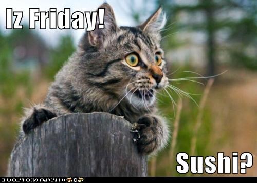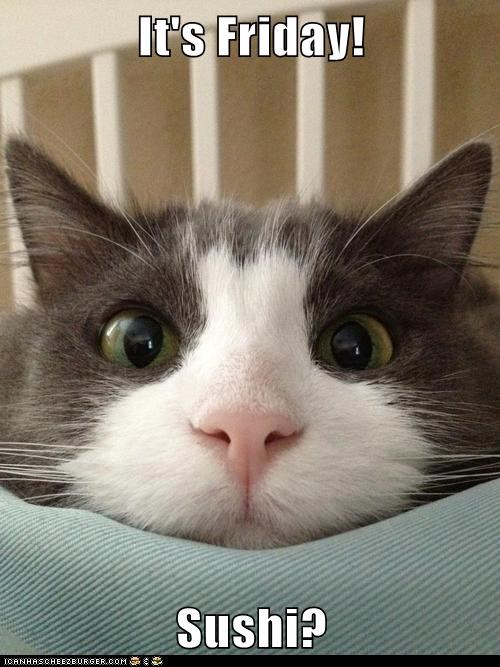 Sushi friday meme. The 15 funniest friday memes to put you in the best mood ever. These memes will make you even more excited than you already were. It s a free online image maker that allows you to add custom resizable text to images. What is the meme generator. Kotta sushi lounge x located in uptown district of dallas and frisco we feature an extensive menu with selection of only the freshest seafood and fish flown in from japan and pacific oceans kotta is perfect for everything from a quick flavorful lunch to an indulgent leisurely dinner. May 8 2018 explore wlotusburns s board sushi puns followed by 175 people on pinterest. Black friday is an annual shopping event observed in the united states on the friday after thanksgiving during which most major retailers open early and offer a variety of promotional sales and discounts to mark the beginning of the holiday shopping season.
